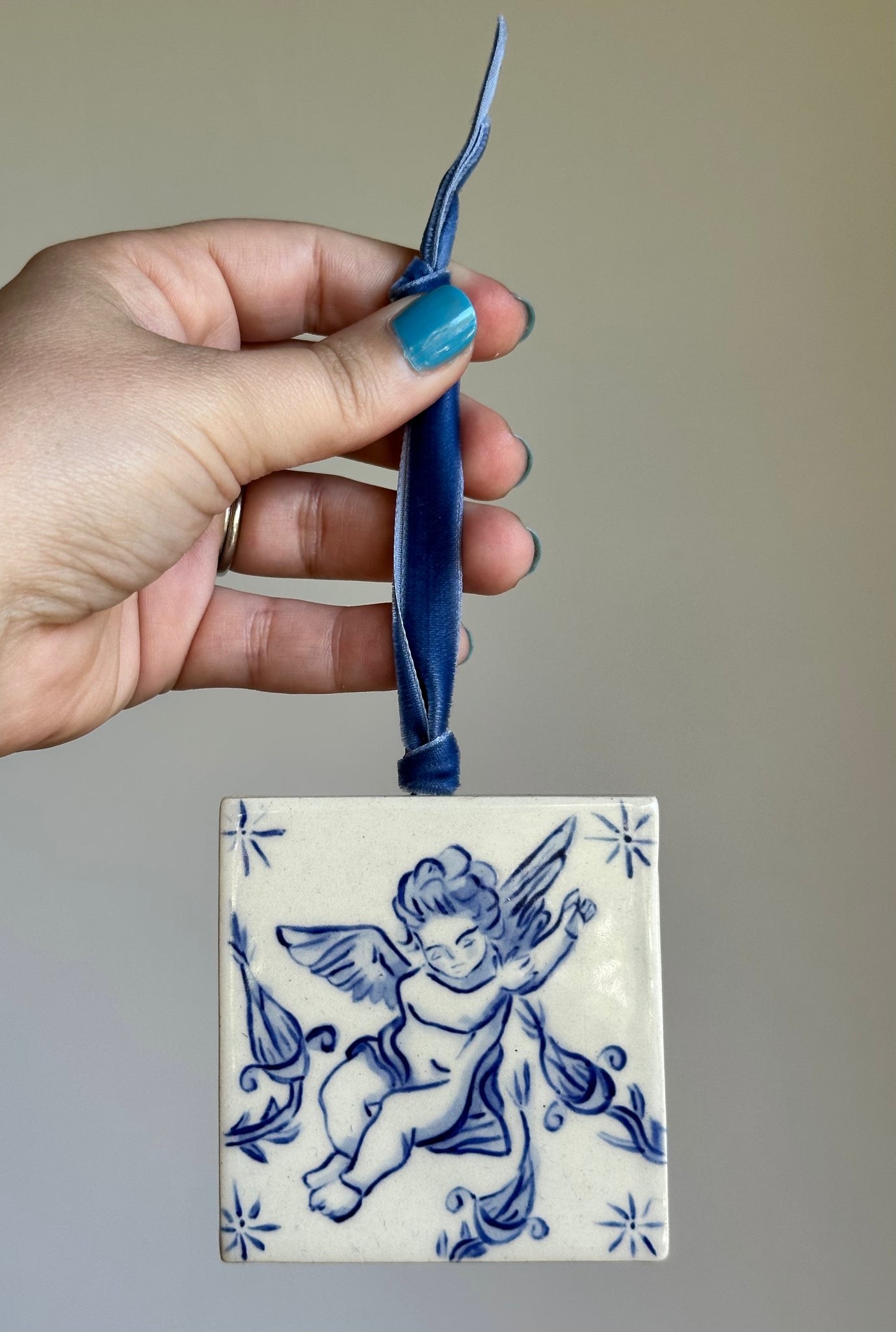 Cherubs, appear often in traditional Portuguese azulejos, carrying with them both divine and earthly symbolism. Adapted from Renaissance and Baroque art, these winged figures were used to express joy, love, and spiritual protection. In tile panels, they dance among floral scrolls, hold garlands, or gaze serenely from the corners of sacred and noble spaces. Their presence blurs the line between the sacred and the ornamental, embodying the Portuguese gift for weaving grace and devotion into everyday life