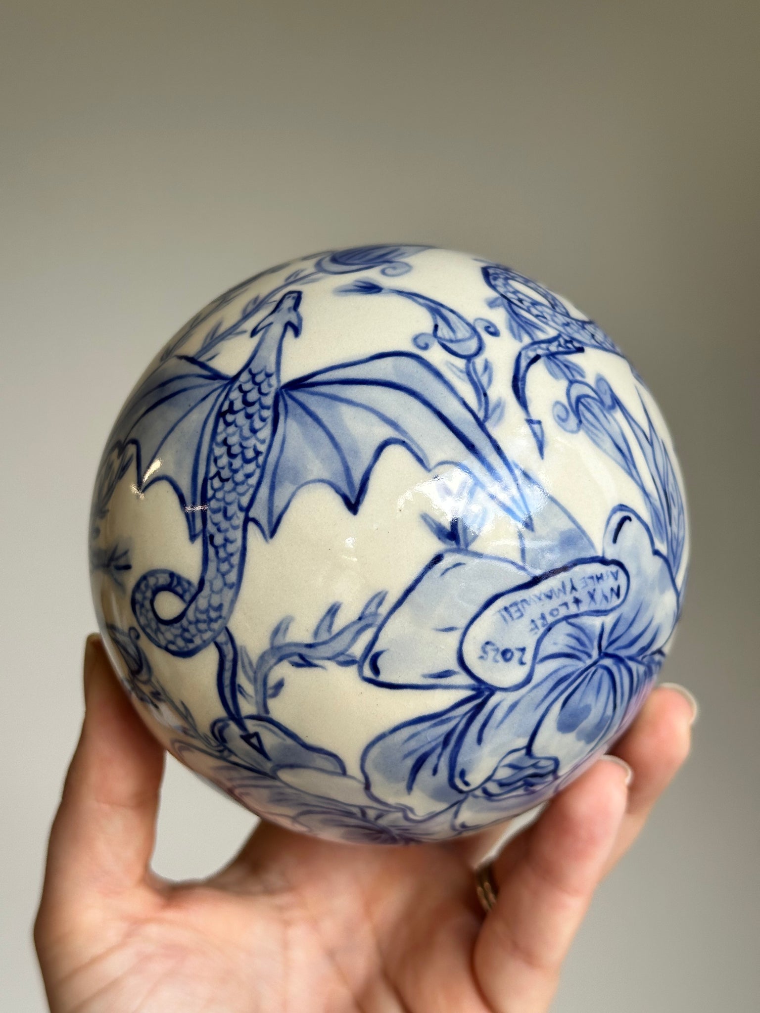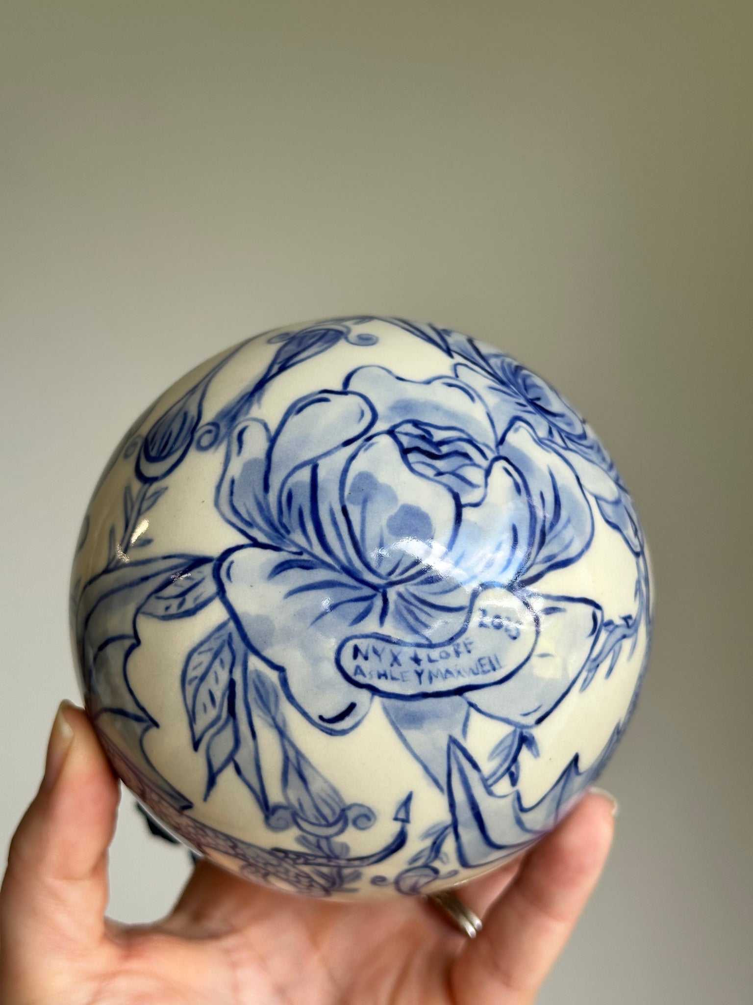 Roughly 4.5x5.5x4.5 inches in size. Measurement not including ribbon.
