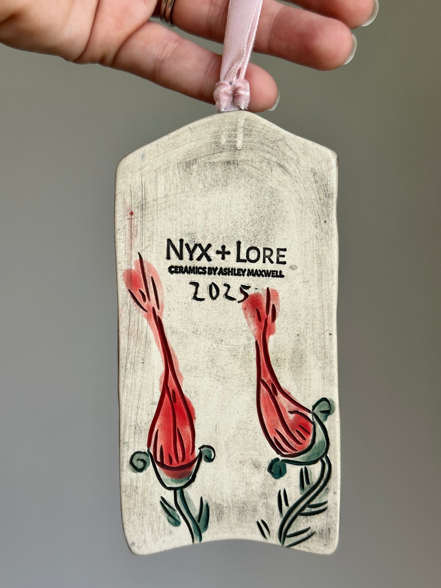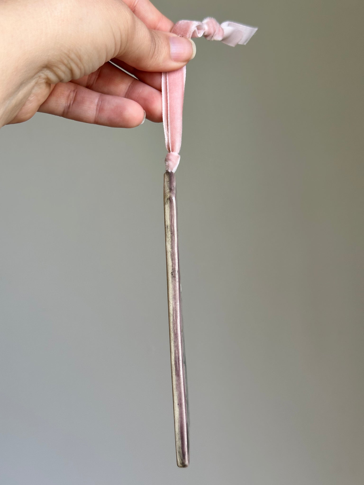 Roughly 5.5 x 2.75 inches in size. Measurement not including ribbon.